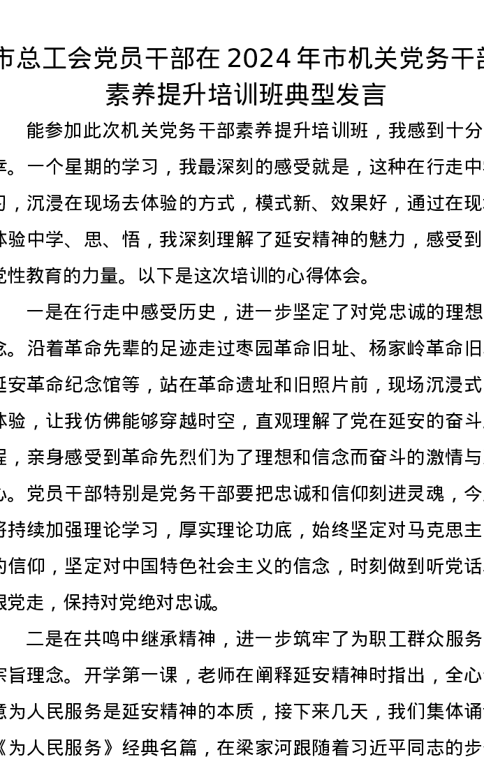 市总工会党员干部在2024年市机关党务干部素养提升培训班典型发言