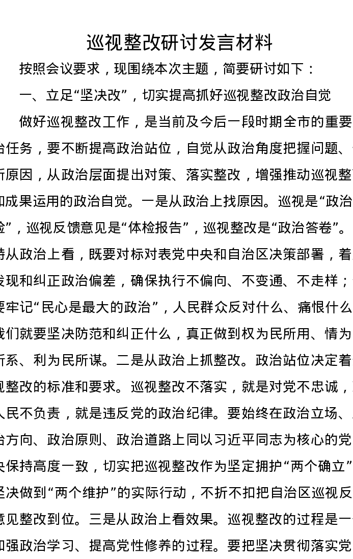 巡视整改研讨发言材料