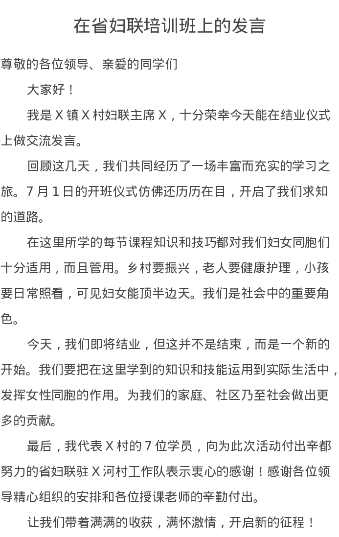 在省妇联培训班上的发言