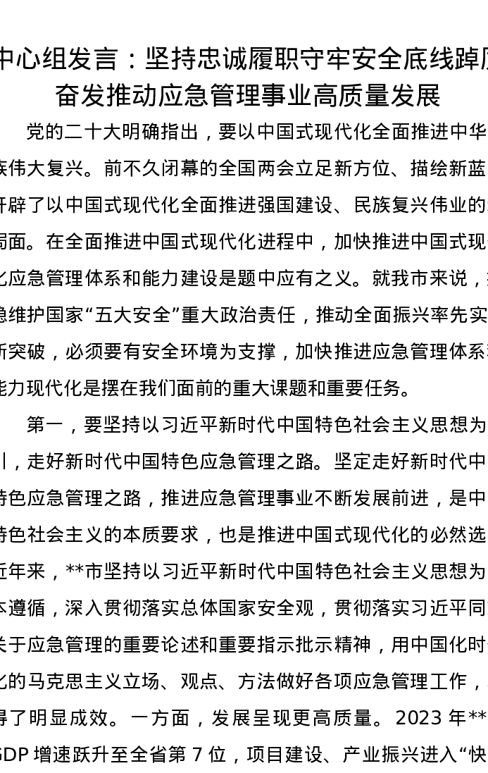 中心组发言:坚持忠诚履职守牢安全底线踔厉奋发推动应急管理事业高质量发展