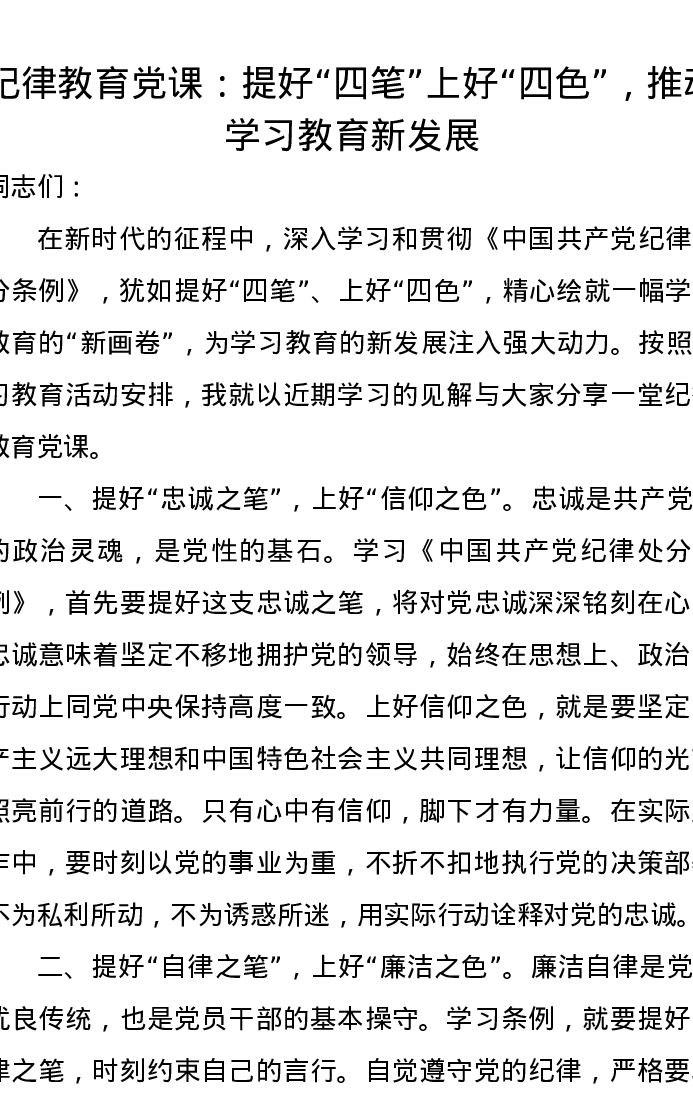 纪律教育党课:提好“四笔”上好“四色”,推动学习教育新发展