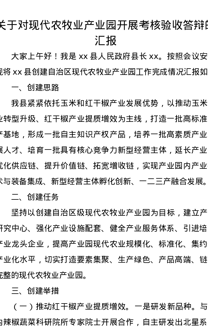 关于对现代农牧业产业园开展考核验收答辩的汇报