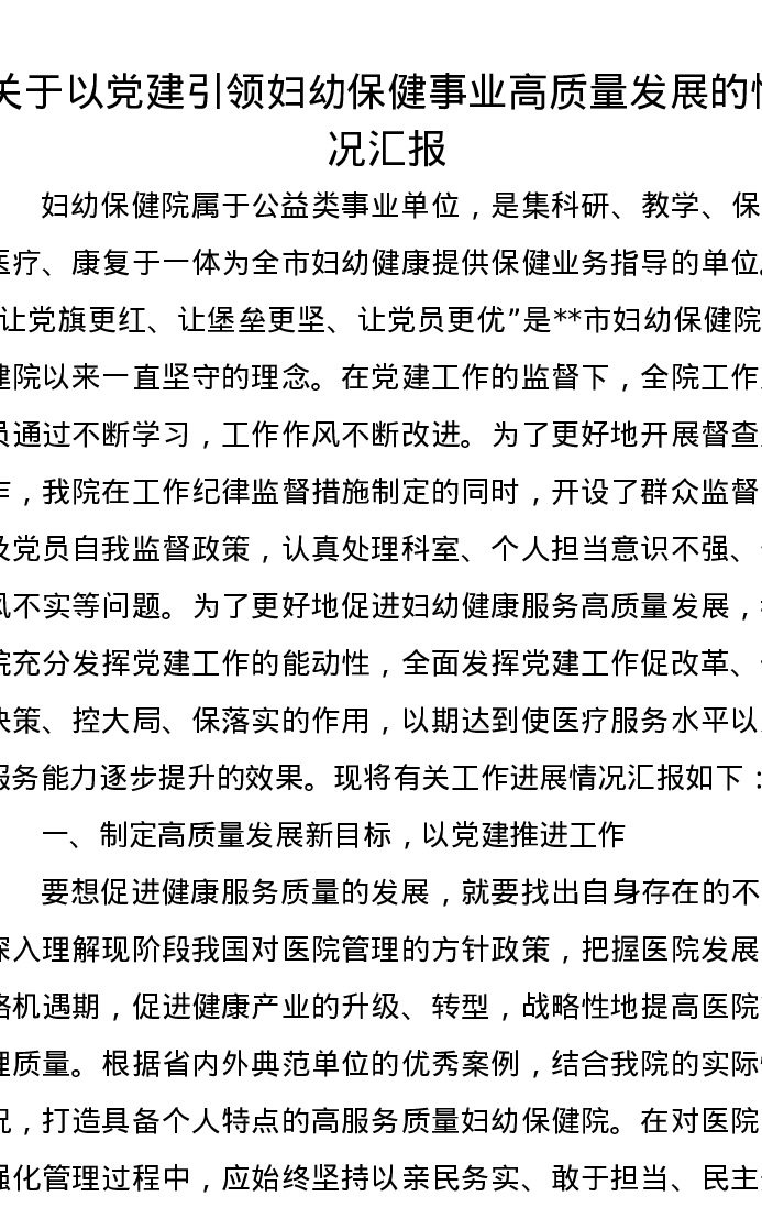 关于以党建引领妇幼保健事业高质量发展的情况汇报