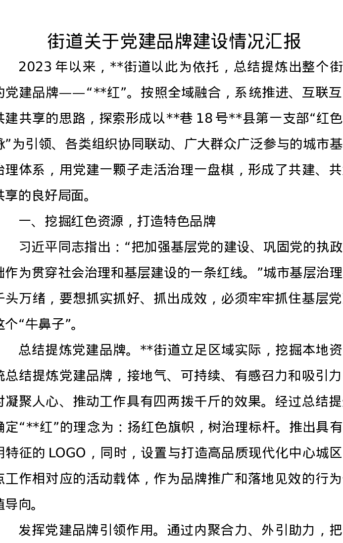 街道关于党建品牌建设情况汇报