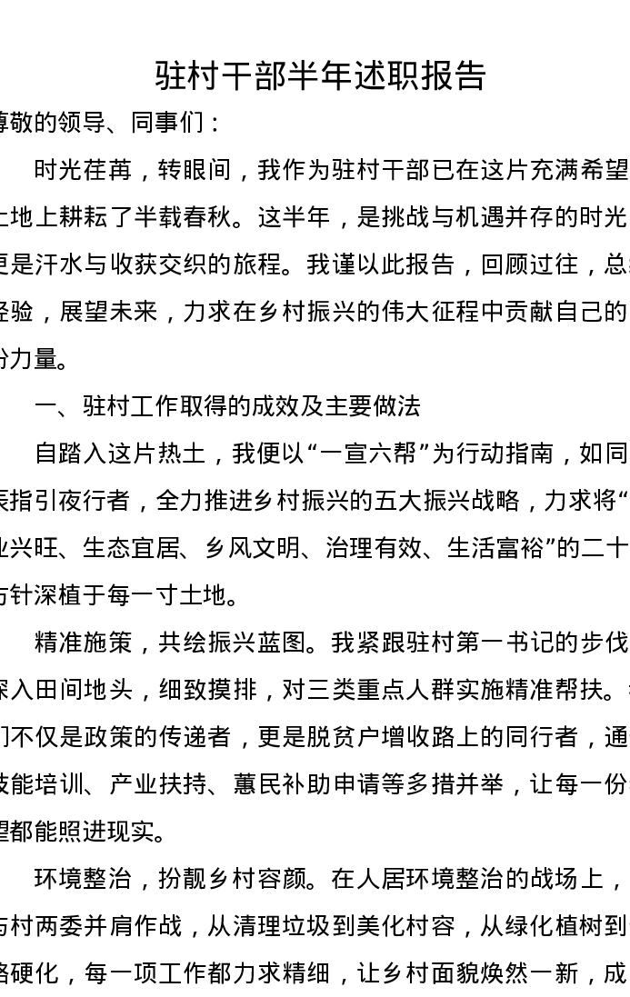 驻村干部半年述职报告