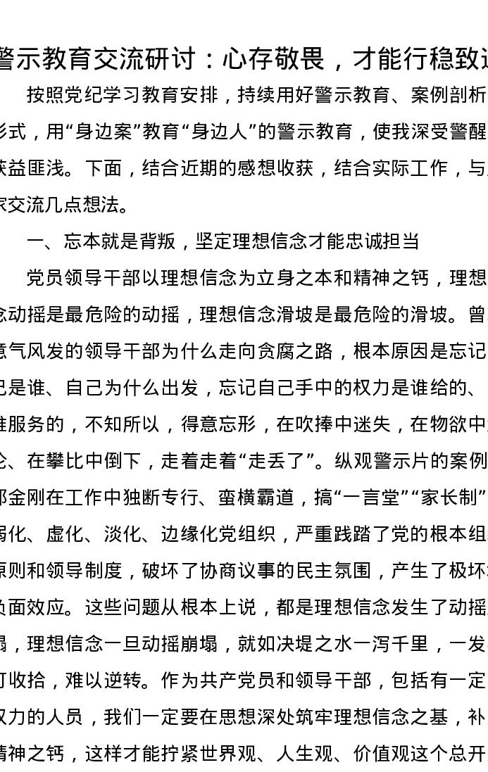 警示教育交流研讨:心存敬畏,才能行稳致远