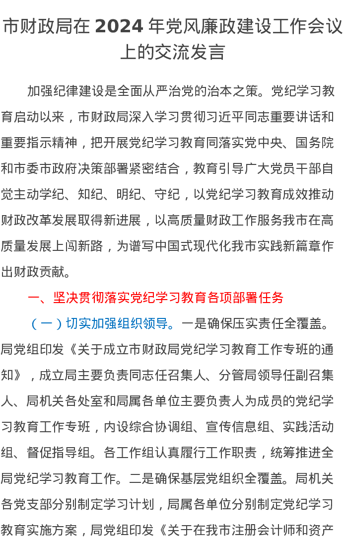 市财政局在2024年党风廉政建设工作会议上的交流发言