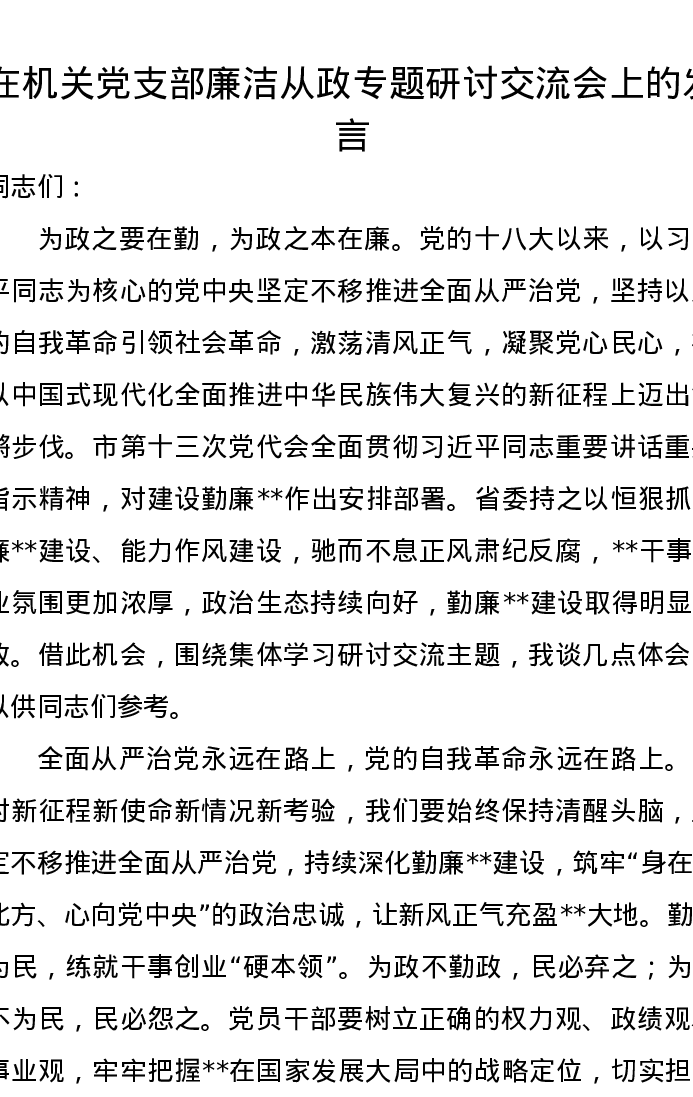 在机关党支部廉洁从政专题研讨交流会上的发言