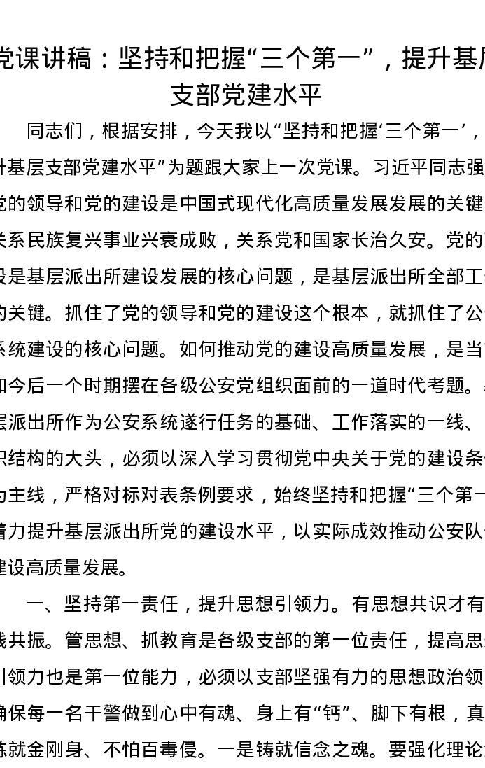 党课讲稿:坚持和把握“三个第一”,提升基层支部党建水平