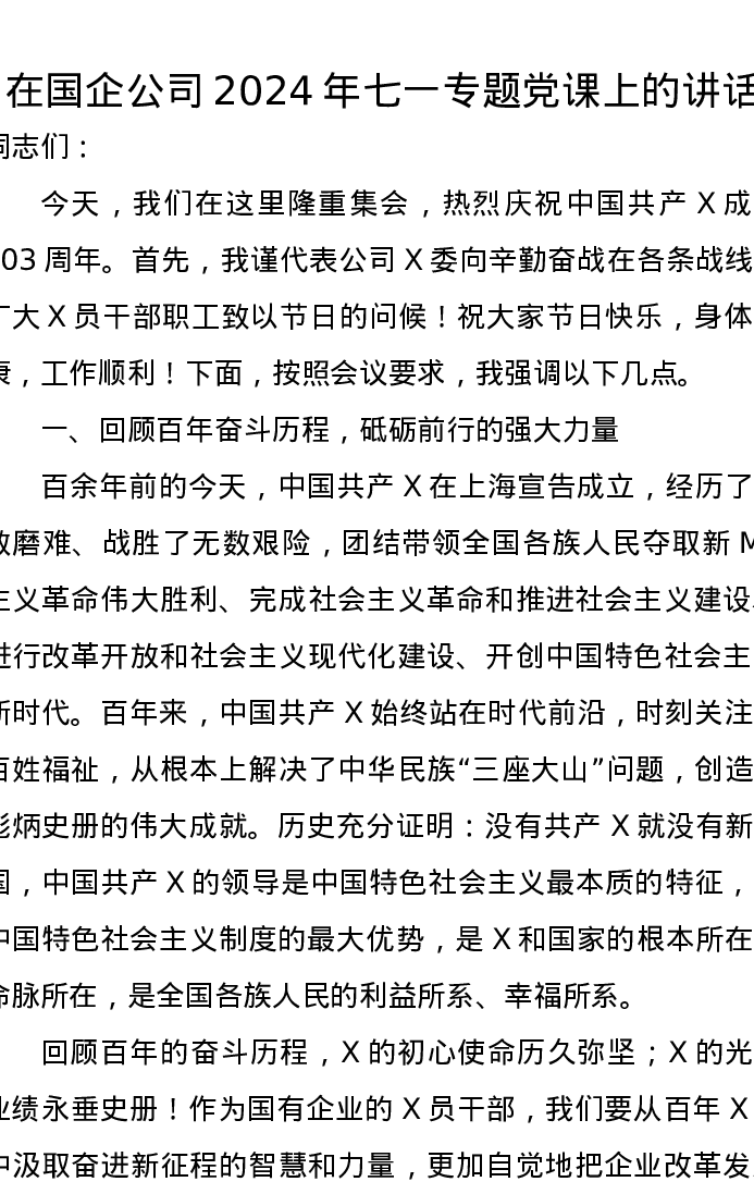 在国企公司2024年七一专题党课上的讲话