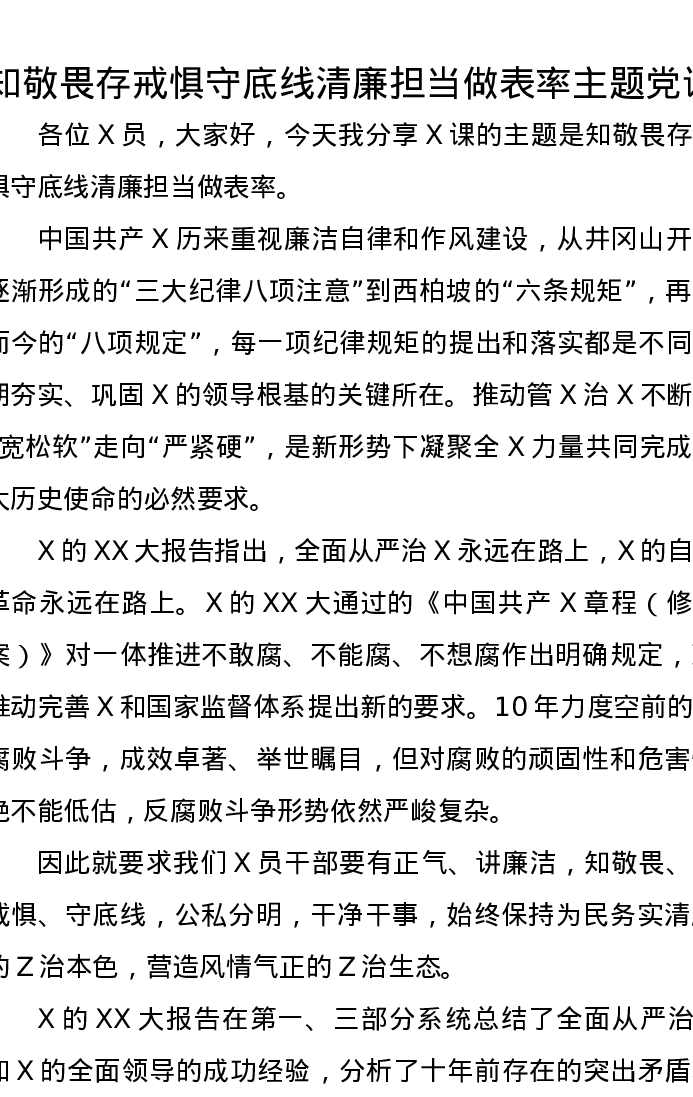 知敬畏存戒惧守底线清廉担当做表率主题党课