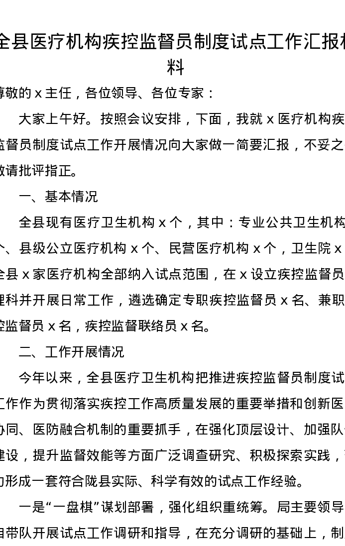全县医疗机构疾控监督员制度试点工作汇报材料