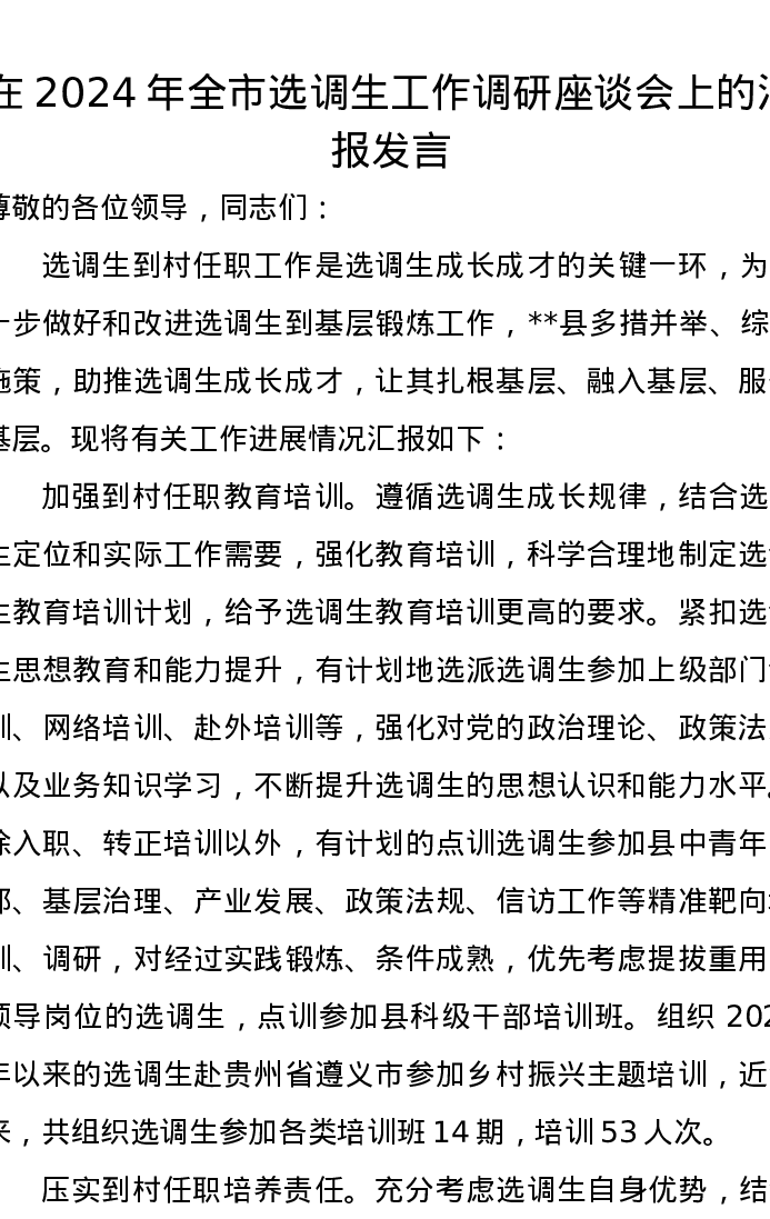 在2024年全市选调生工作调研座谈会上的汇报发言