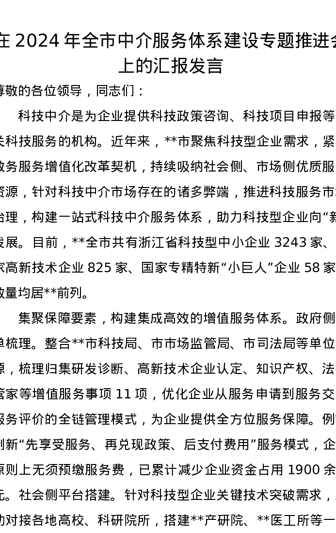 在2024年全市中介服务体系建设专题推进会上的汇报发言