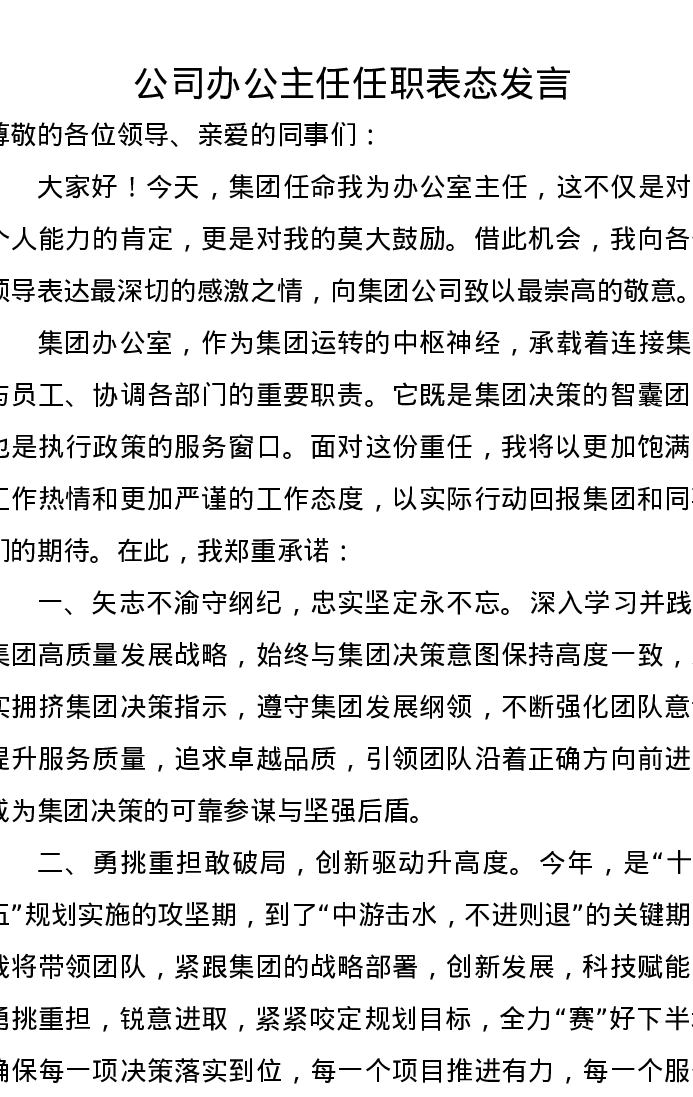 公司办公主任任职表态发言