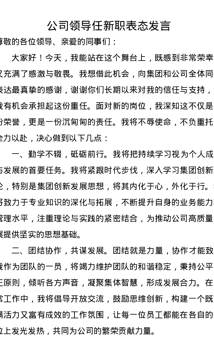 公司领导任新职表态发言