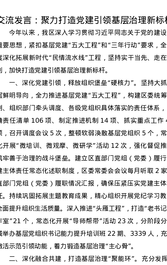 交流发言:聚力打造党建引领基层治理新标杆