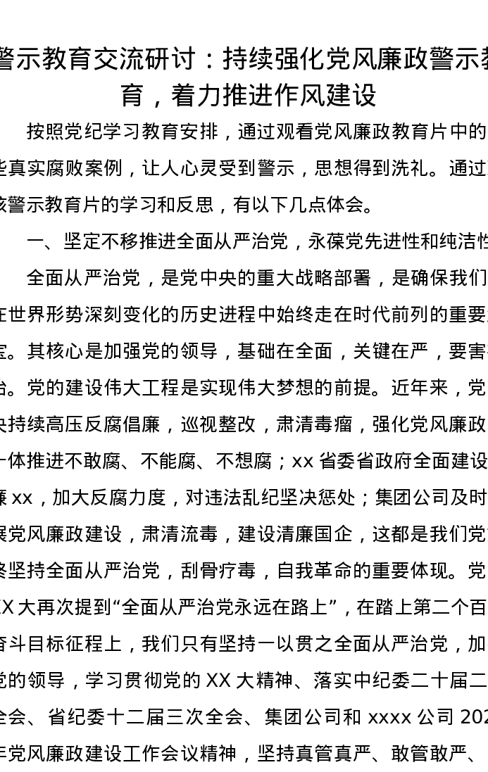 警示教育交流研讨:持续强化党风廉政警示教育,着力推进作风建设