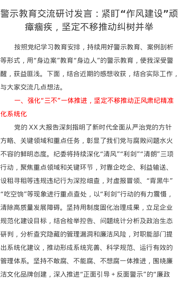 警示教育交流研讨发言:紧盯“作风建设”顽瘴痼疾,坚定不移推动纠树并举