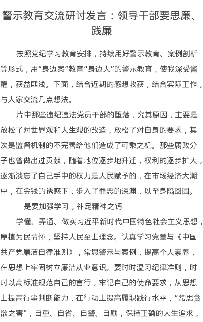 警示教育交流研讨发言:领导干部要思廉、践廉