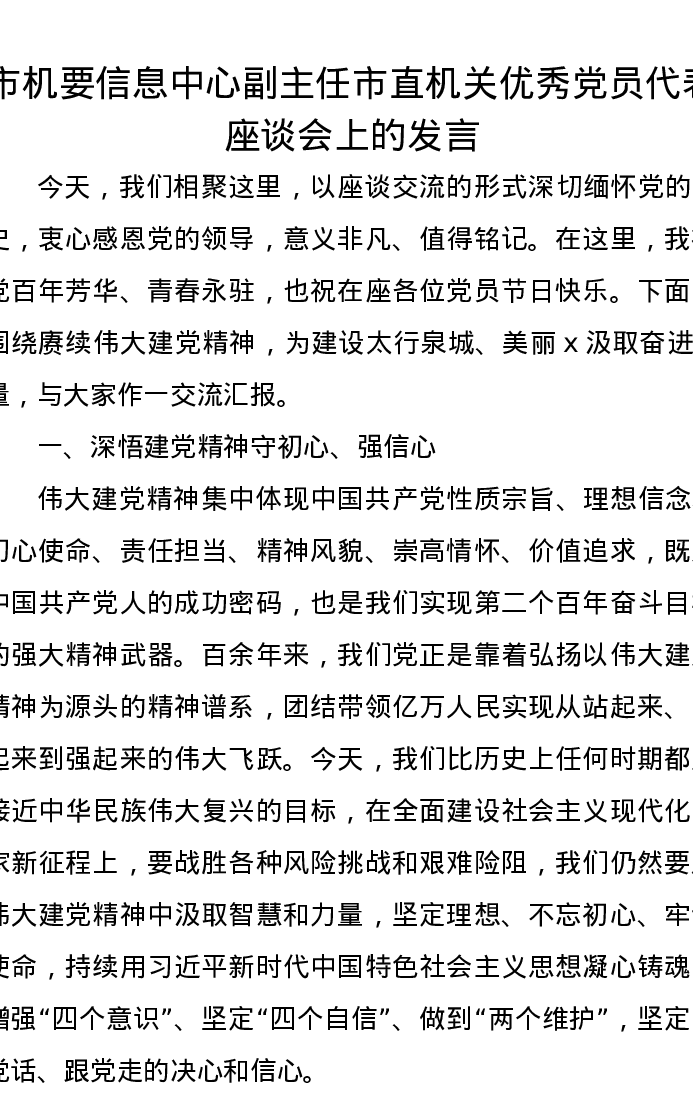 市机要信息中心副主任市直机关优秀党员代表座谈会上的发言