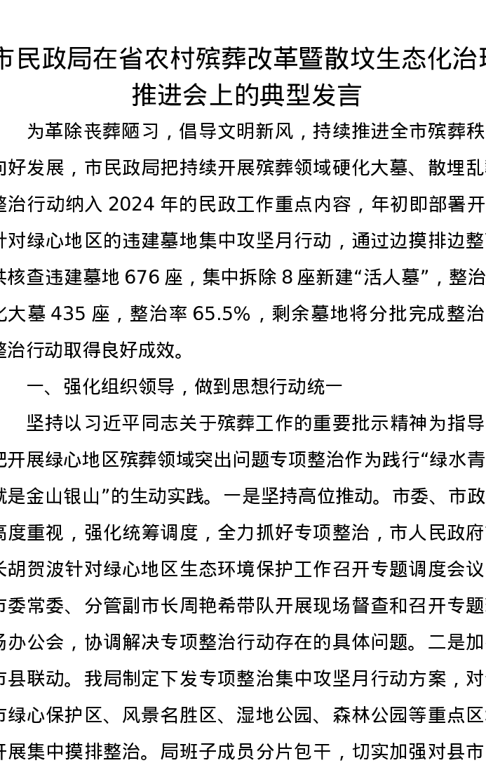 市民政局在省农村殡葬改革暨散坟生态化治理推进会上的典型发言