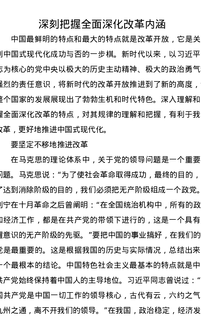 研讨发言:深刻把握全面深化改革内涵