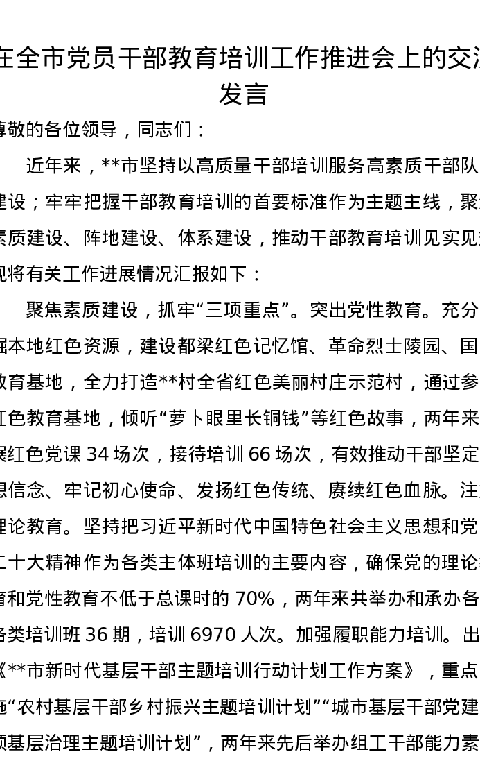 在全市党员干部教育培训工作推进会上的交流发言