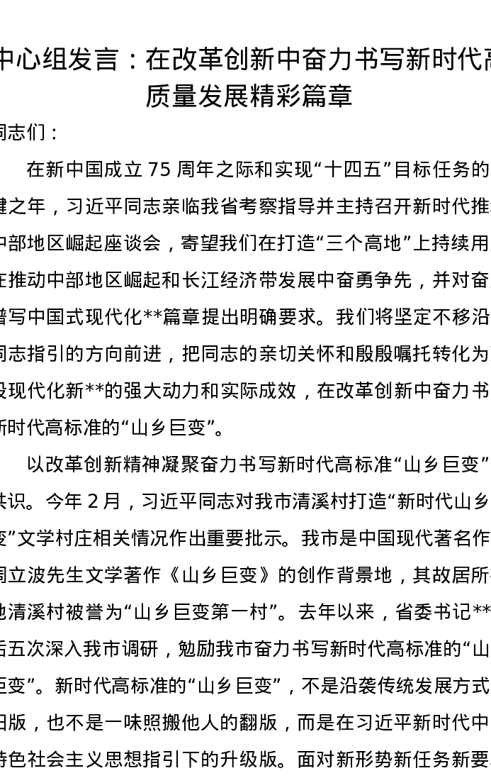 中心组发言:在改革创新中奋力书写新时代高质量发展精彩篇章
