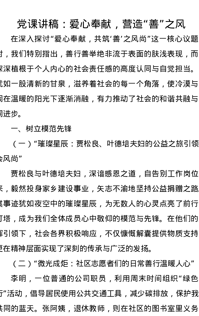 党课讲稿:爱心奉献,营造“善”之风