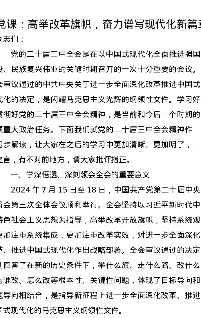 党课讲稿:高举改革旗帜,奋力谱写现代化新篇章