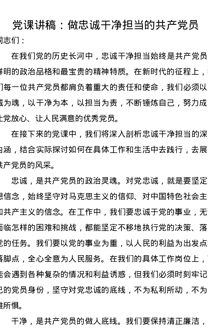 党课讲稿:做忠诚干净担当的共产党员