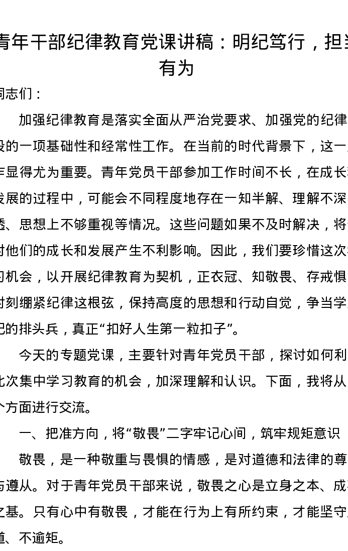 青年干部纪律教育党课讲稿:明纪笃行,担当有为