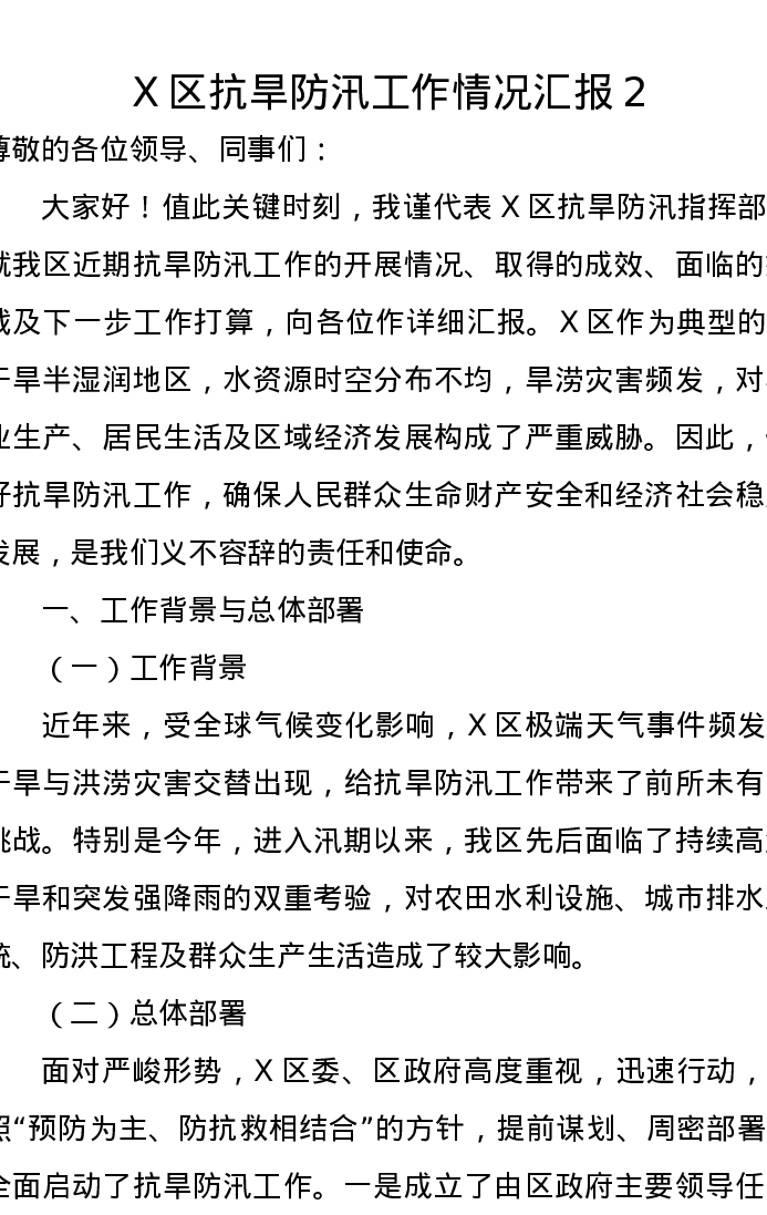 X区抗旱防汛工作情况汇报2