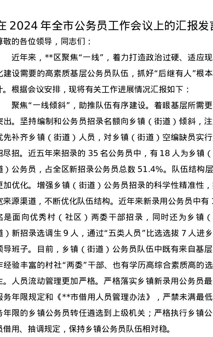 在2024年全市公务员工作会议上的汇报发言
