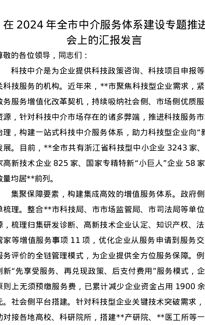 在2024年全市中介服务体系建设专题推进会上的汇报发言
