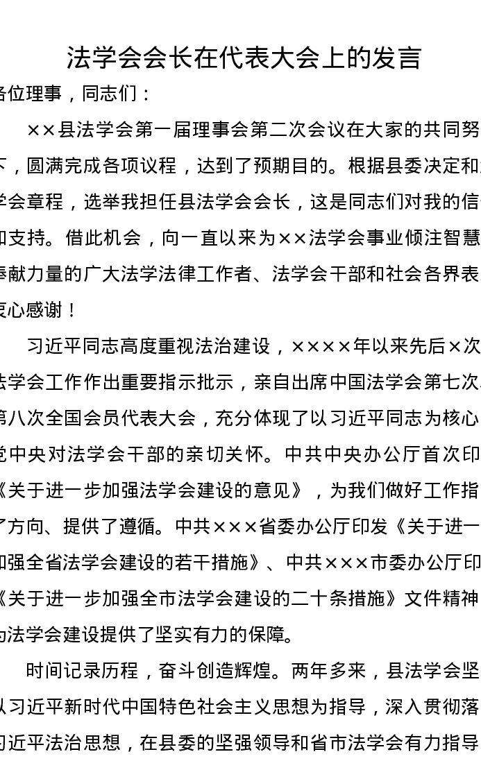 法学会会长在代表大会上的发言