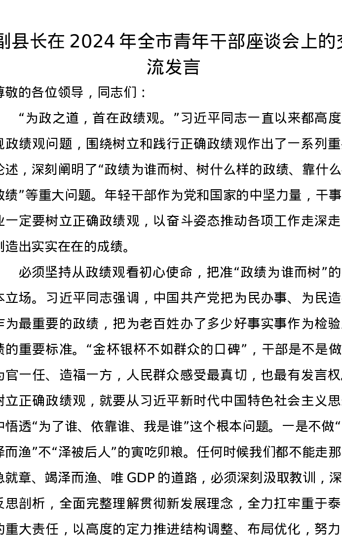 副县长在2024年全市青年干部座谈会上的交流发言