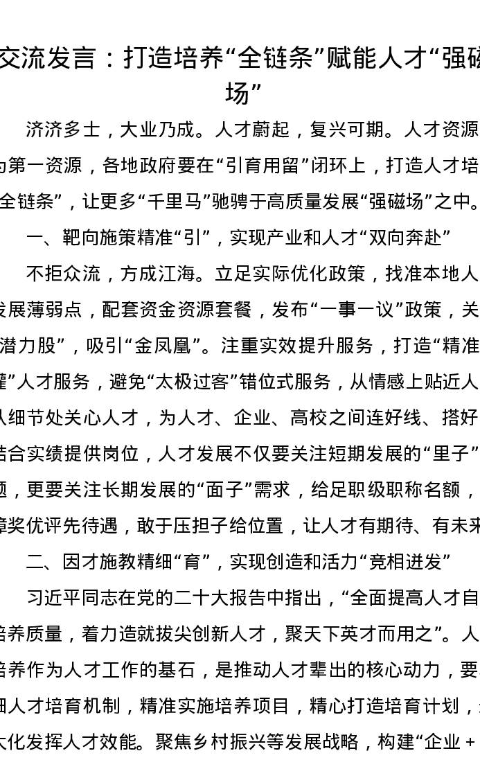 交流发言:打造培养“全链条”赋能人才“强磁场”