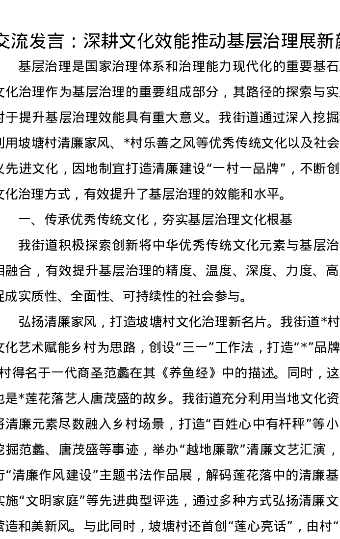 交流发言:深耕文化效能推动基层治理展新颜