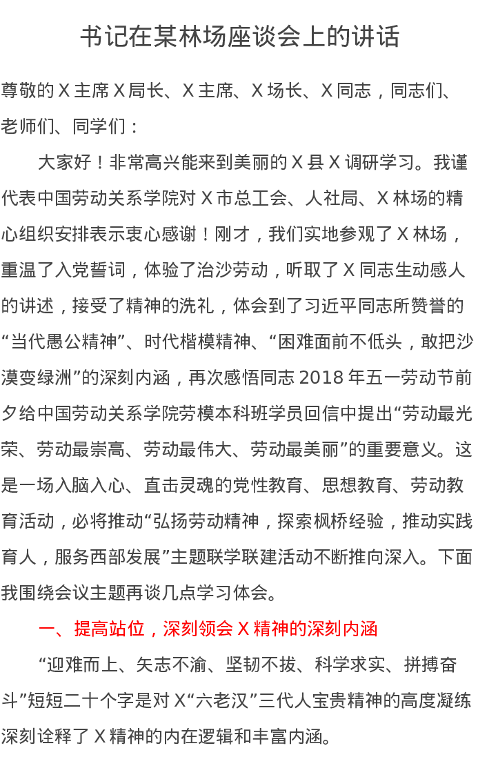 书记在某林场座谈会上的讲话