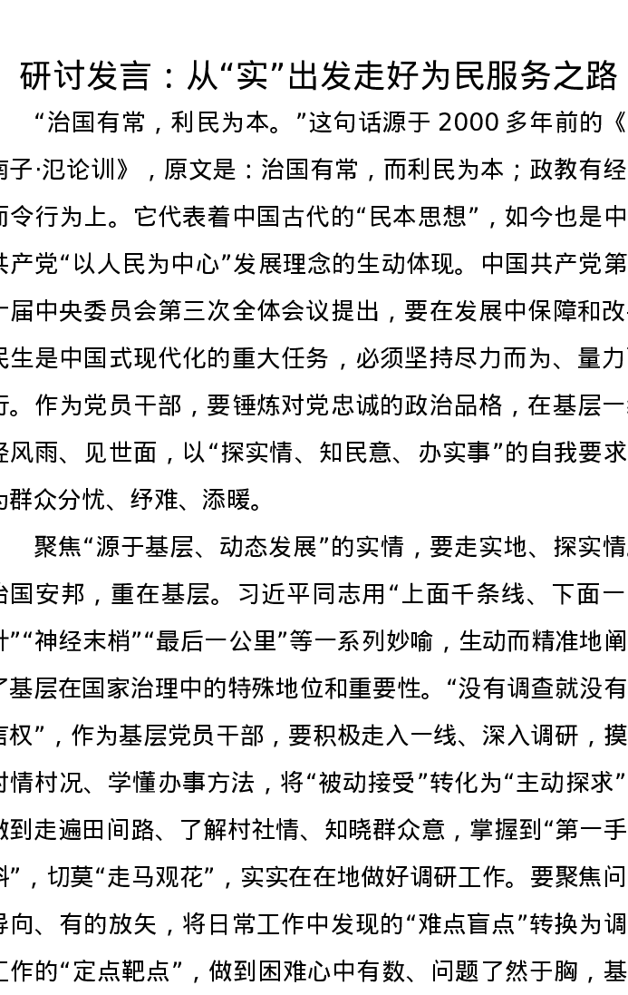 研讨发言:从“实”出发走好为民服务之路
