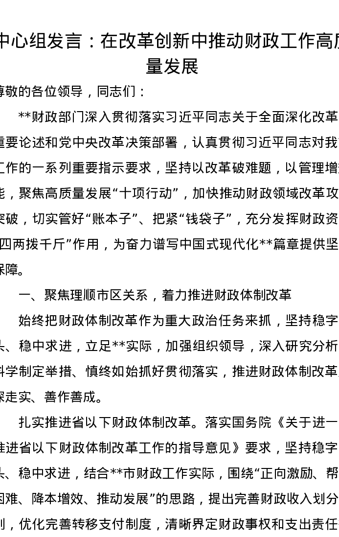 中心组发言:在改革创新中推动财政工作高质量发展