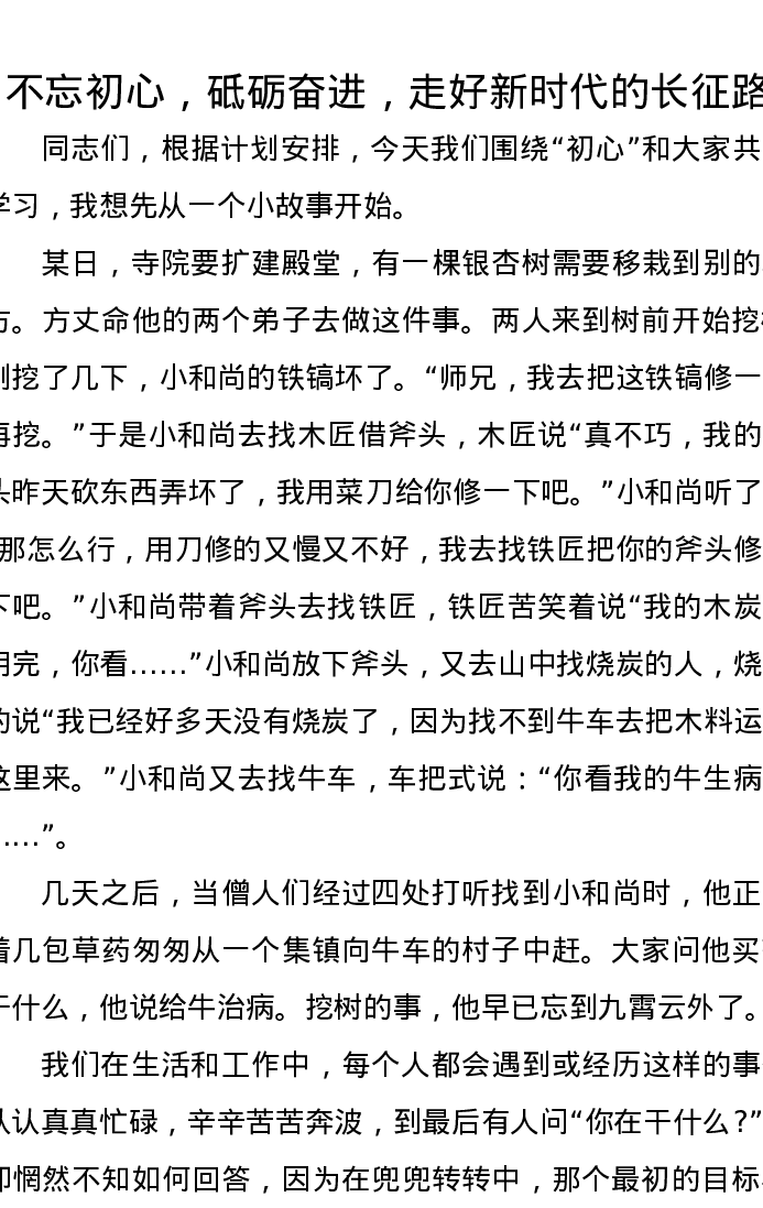 党课讲稿:不忘初心,砥砺奋进,走好新时代的长征路