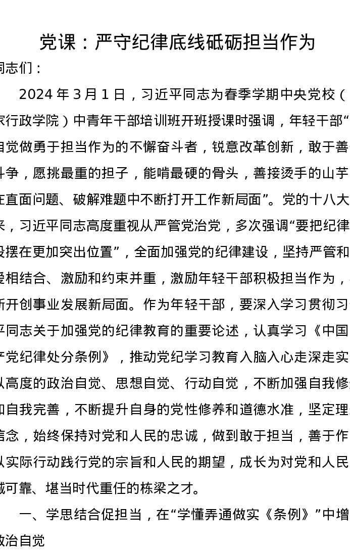 党课讲稿:严守纪律底线砥砺担当作为