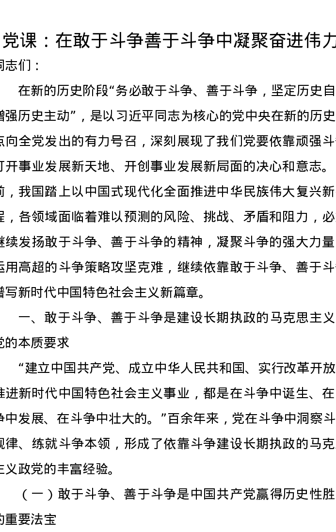党课讲稿:在敢于斗争善于斗争中凝聚奋进伟力