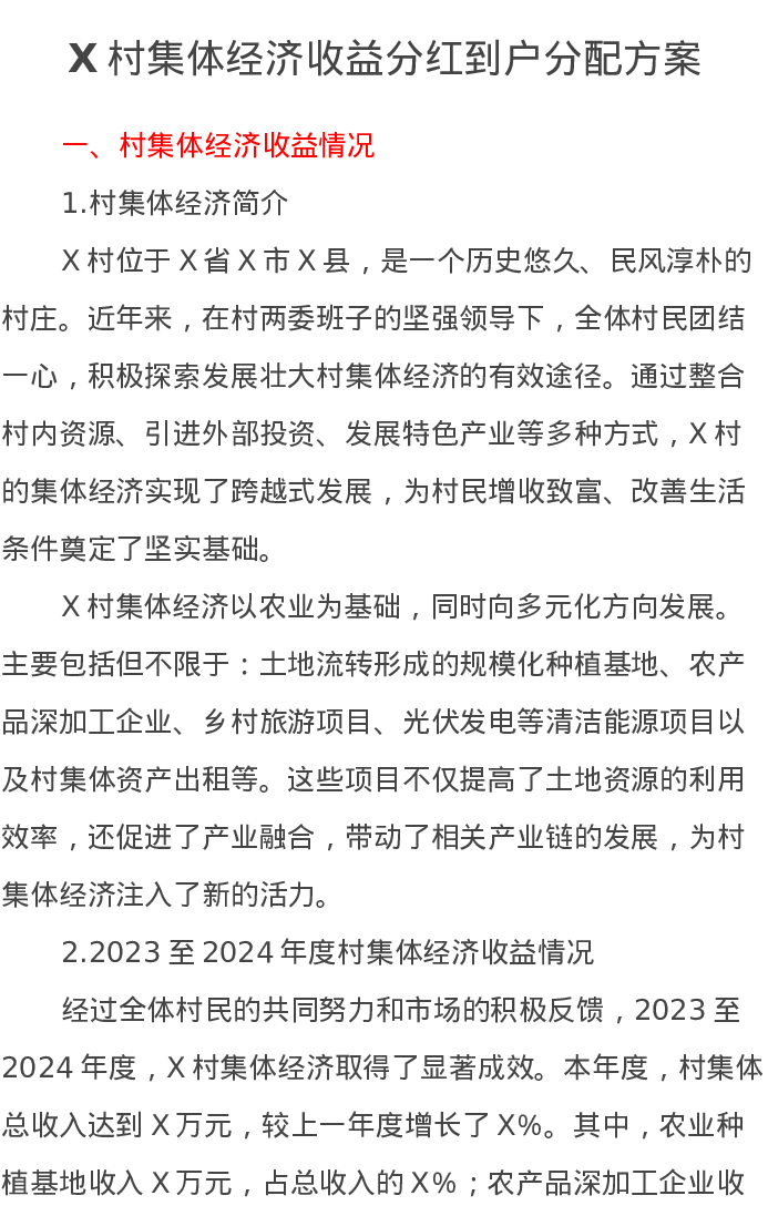 X村集体经济收益分红到户分配方案
