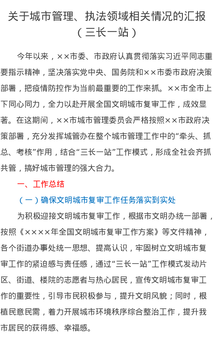 关于城市管理、执法领域相关情况的汇报(三长一站)