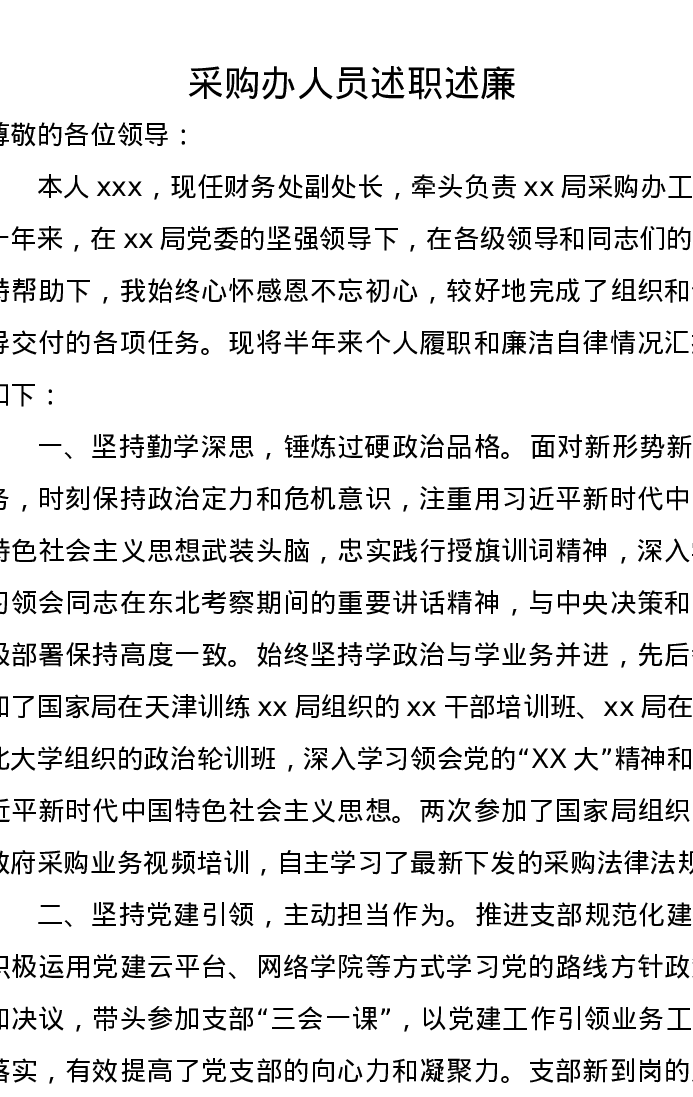 采购办人员述职述廉报告