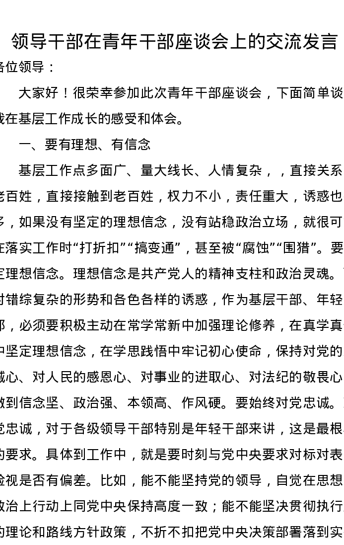 领导干部在青年干部座谈会上的交流发言